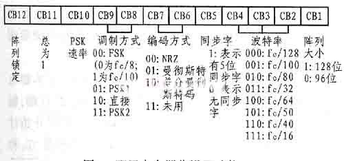 2.3 配置寄存器     配置寄存器用于确定芯片的工作参数。配置寄存器也能以非接触方式编程,它由制造商在生产中进行编程。配置寄存器共有12位,其功能如图2所示。其中位11(CB11)总是为1。位10(CB10)用于设置PSK速率,置1时速率为FC/4,置0时速率为FC/2。当CB12为0时,表示存储阵列未被锁定;为1时表示成功地完成了接触编程或非接触编程,此时芯片工作于防冲突只读模式下。   2.4 防冲突电路     片内有防冲突电路,当发生冲突时,MCRF250可停止数据发送,并在防冲突电路的控制下,可再一次在适当的时候传送数据。这种功能保证了当读写器射频场中有多个RFID卡时,可以逐一读取。该防冲突措施要求读写器能提供载波信号中断的时隙(GAP)能力。